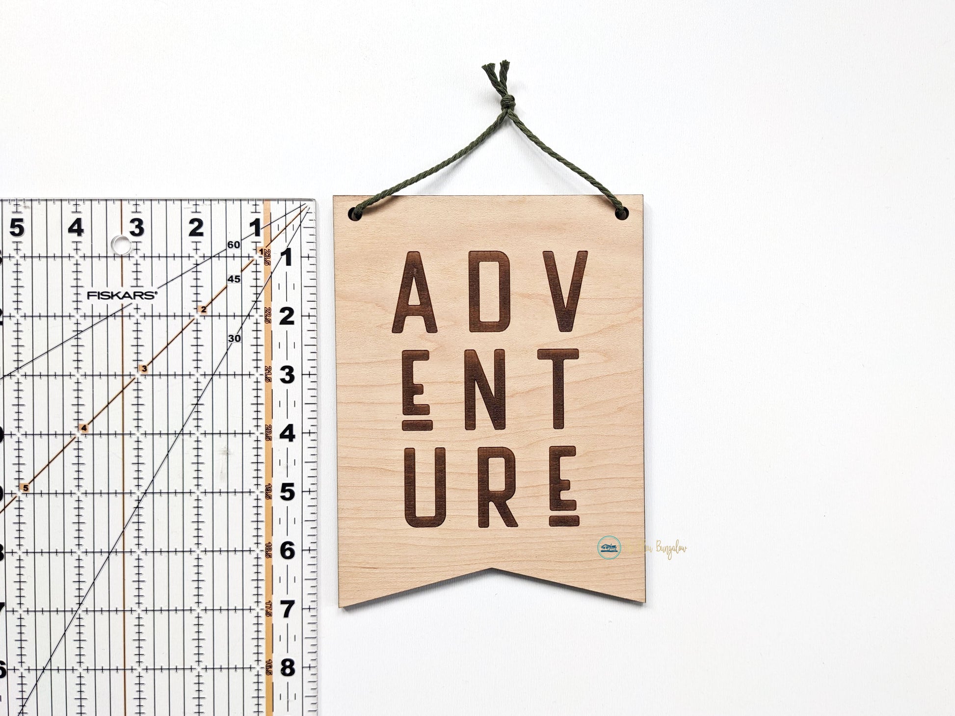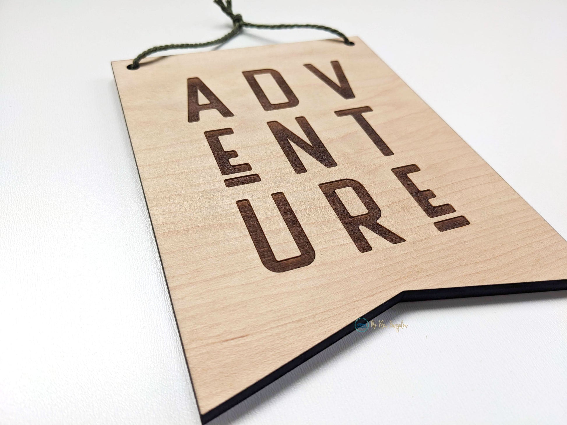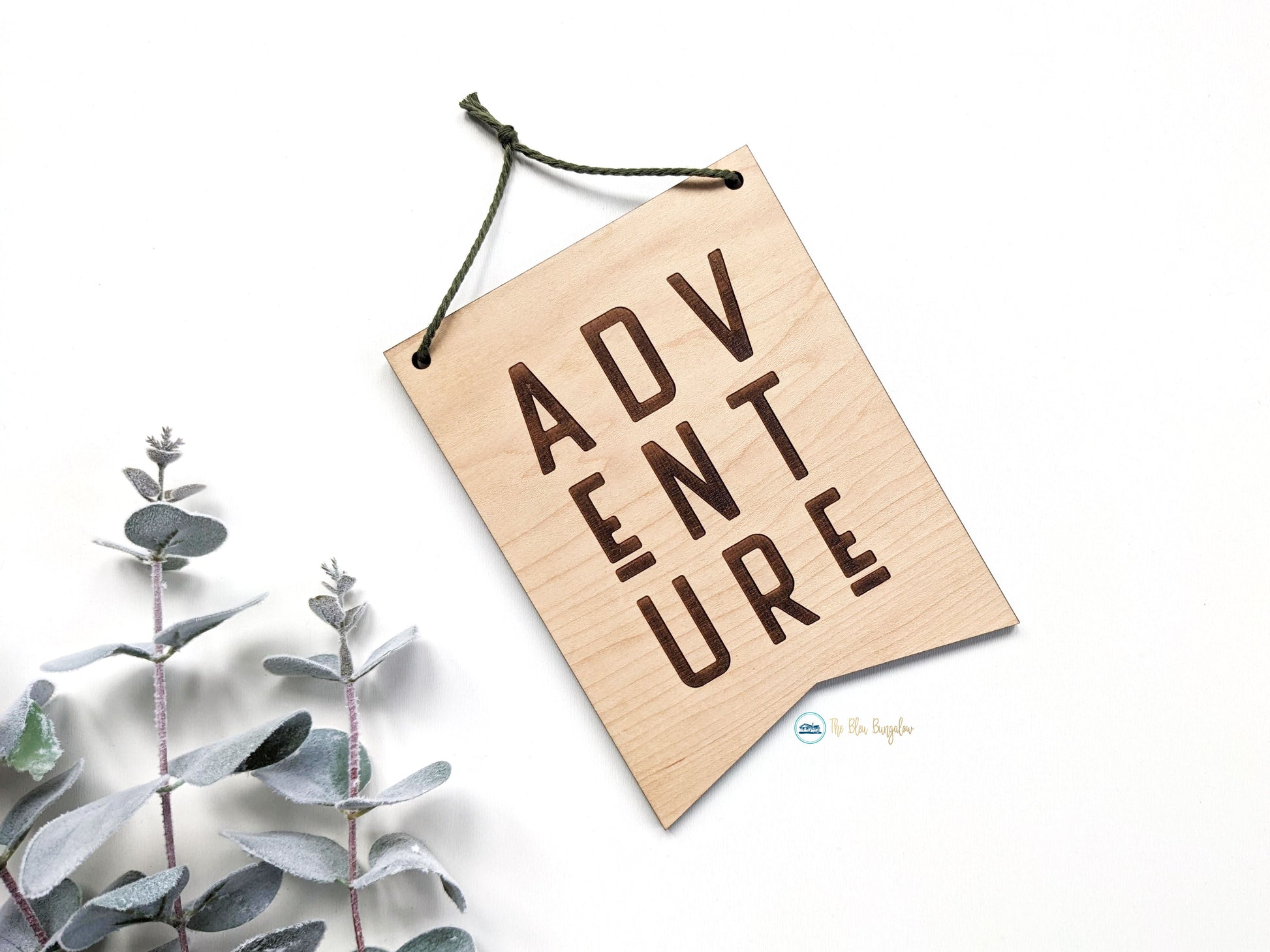 Featuring the word "adventure" in a stylized text design, this nursery wall decor is made of 1/4" maple and accented with your choice of cotton cord. It fits perfectly with adventure, explorer, camping, woodland and nature themed nurseries!