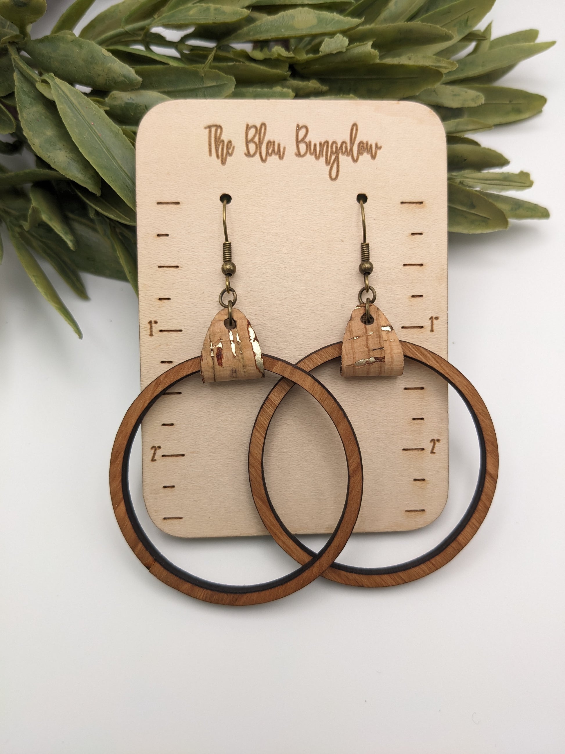 Made of 1/8" cherry, this set features a classic hoop design coupled with a gold foil and cork fabric accent.