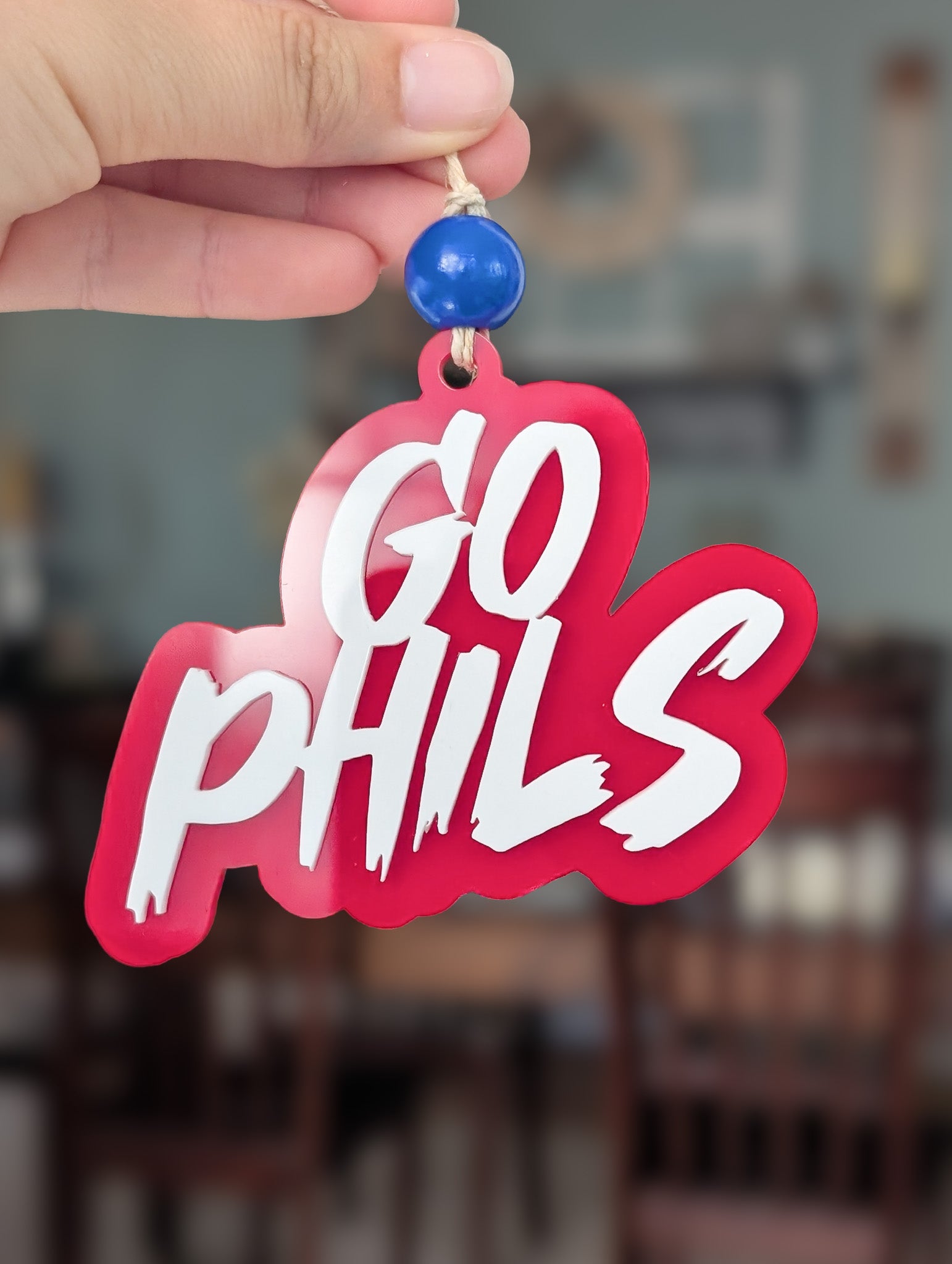 Made of two layers of 3mm acrylic, this unique ornament is accented with a blue, wooden bead and durable hemp cord. It's the perfect gift for any dedicated Phillies fan!