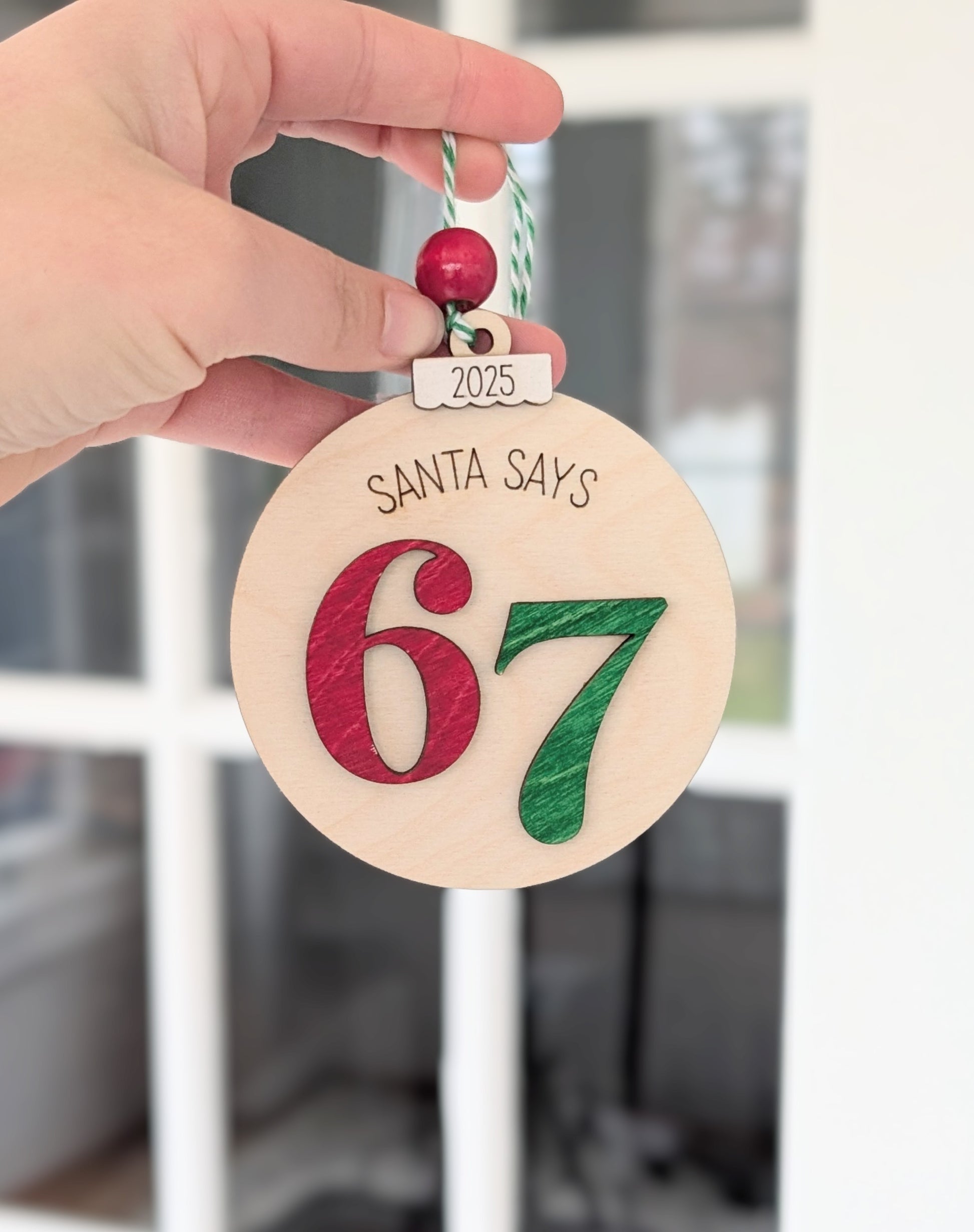 Bring a little laughter to your tree this year with this “Santa Says 6 7” ornament—made for the parents who’ve heard “six seven” approximately one million times.