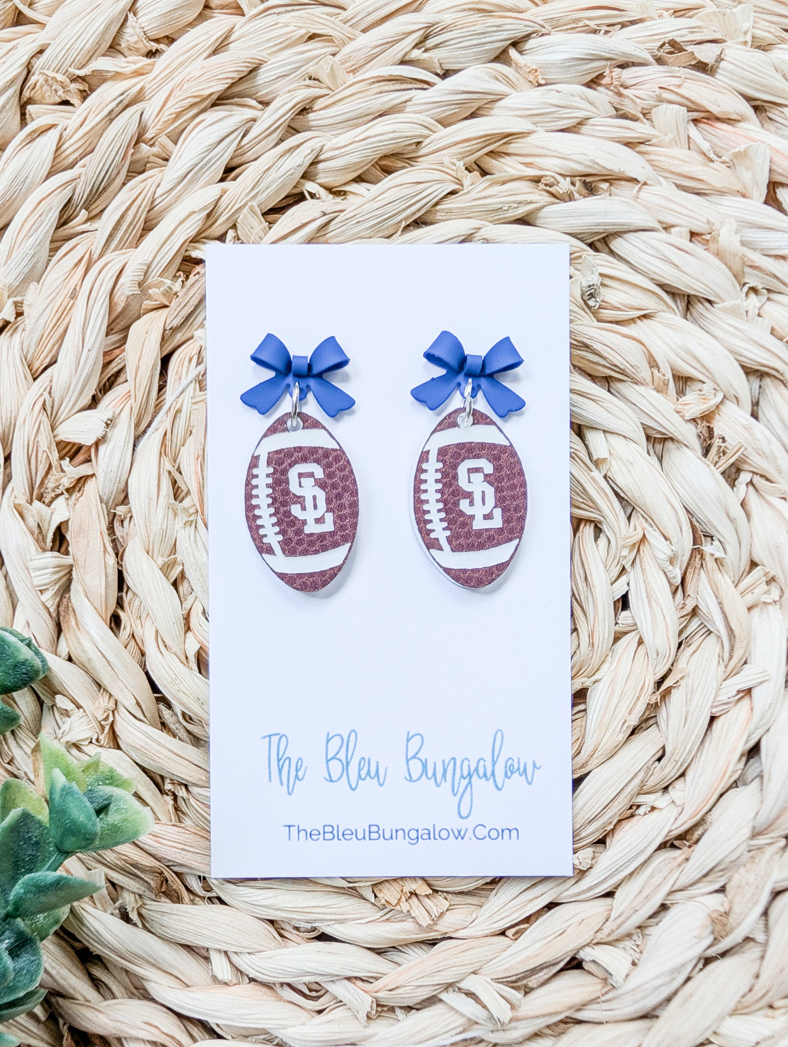 These earrings are made with engraved 1/8" football acrylic and measure approximately 1.5" from top to bottom (hardware included).