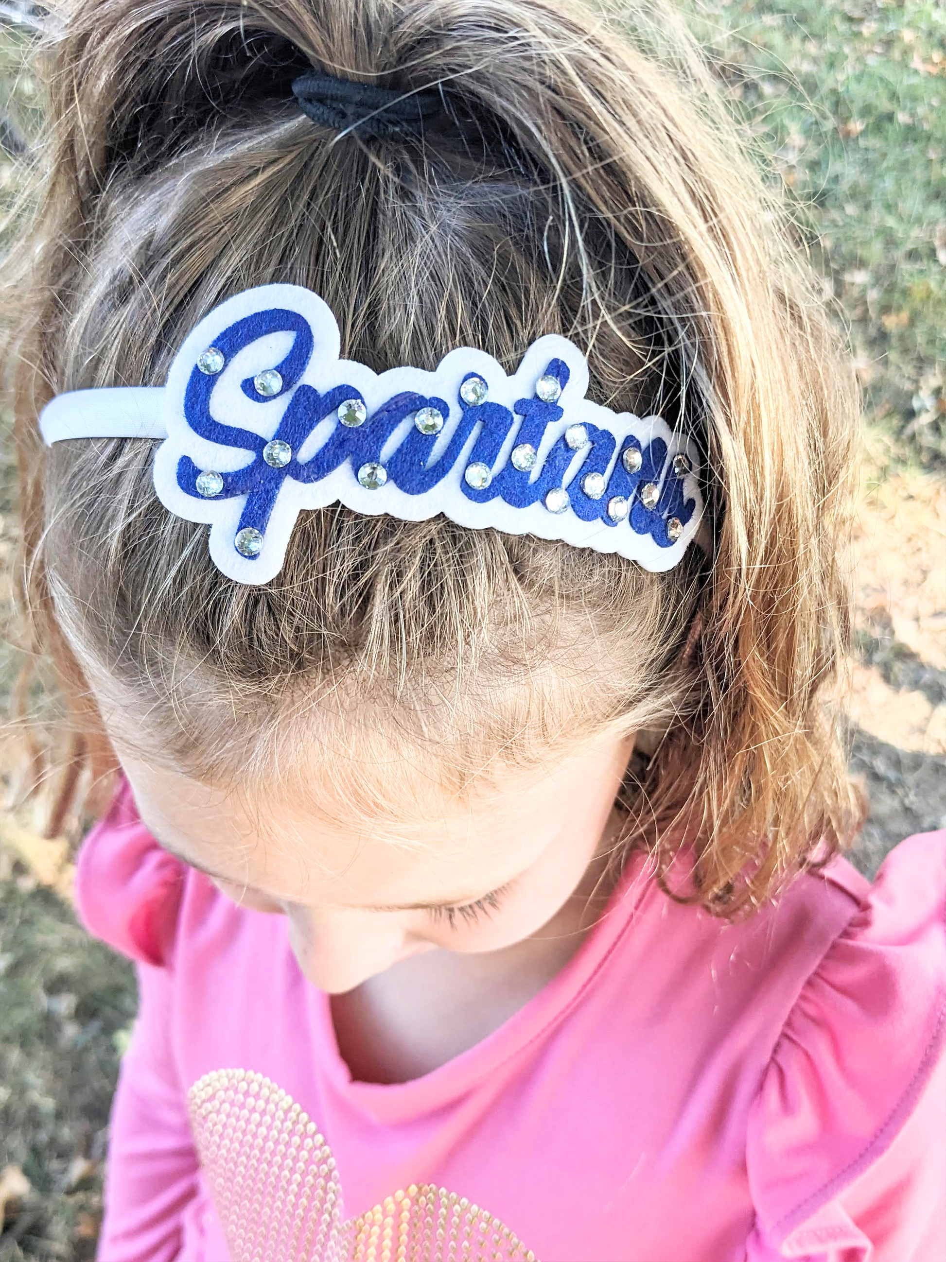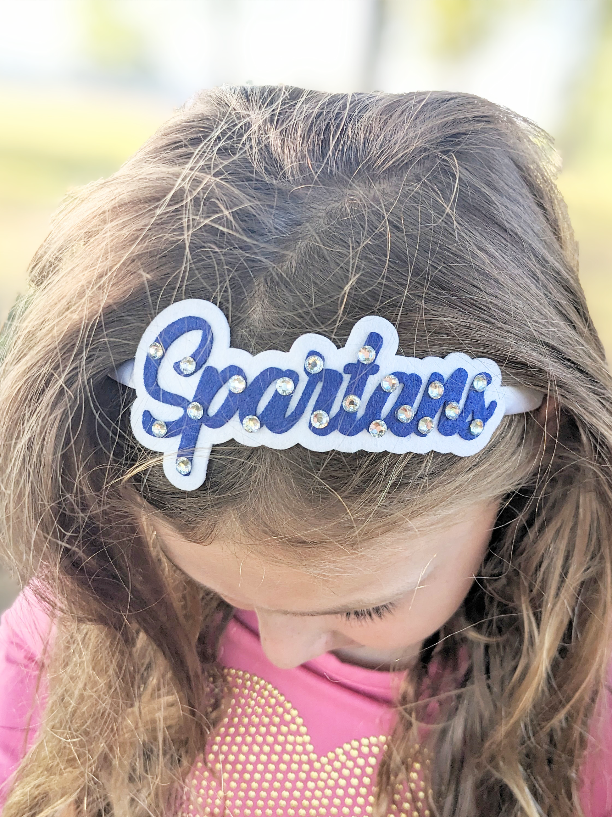 Showcase your team spirit on the sidelines with this handmade, felt and rhinestone headband!